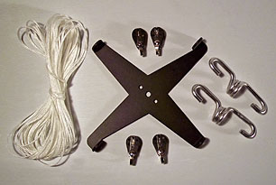 blocks, a set of Brooxes Hangups©, a nylon washer, and 30 ft of lacing