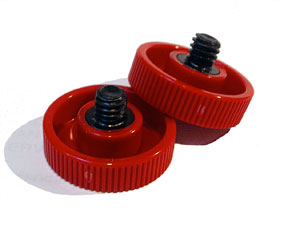 Brooxes Better Camera Keeper Here's an elegant way to attach your camera to the tilt frame. The 1/4-20 screw is just 1/4" long, a perfect length to tighten down securely on our frames with the twist of a finger — no need for washers or padding to be sure the camera is snugly attached. The plastic knob is red so you won't lose it in the grass, but can be easily drilled to attach a string or elastic cord so you're sure not to lose it. For mounting cameras to thicker frames, we now offer a version (not shown) with a longer 5/16" screw and a yellow knob so you can tell the difference. Same price. BROOXES BETTER CAMERA KEEPER U$2.50