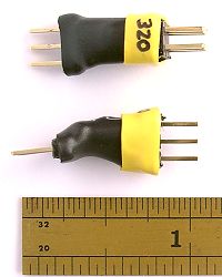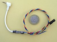 gentWIRE-USB (Canon) This variation, which looks identical to the one above, is for controlling Canon point-&-shoot cameras which have the unofficial CHDK firmware enhancement, with or without the SDM variation, reputed to be better-tailored for KAP. This non-destructive modification is added to the camera via the SD card, enabling many creative possibilities for remote photographers. The gentWIRE-USB (Canon) replaces a shutter servo, triggering the camera through the USB port. It may be used in conjunction with a conventional radio control system or the AuRiCo controller, or with a simple wired switch. Weighing in at just 9 grams (1/3 oz), the gentWIRE-USB (Canon) includes ~250mm (~10") cables and both connectors. It is compatible with many Canon models; for a complete list, see here. A script is necessary, along with the CHDK software. Links to both of those and a complete tutorial on the installation may be found here. gentWIRE-CHDK: U$44.00 postpaid